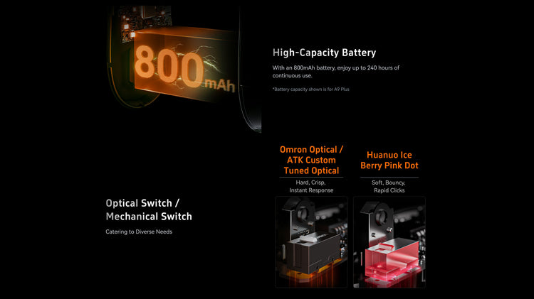 The ATK Dragonfly A9 Pro features flagship optical / mechanical switches (varies by model) to cater to diverse gaming needs:
